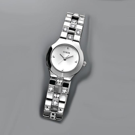 sun silvertone dial polished silvertone bracelet with crystals adjustable G-link waterresistant to 10 metres polished silvertone cases