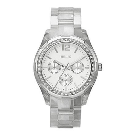 Relic® Ladies Multifunction Clear Acetate Watch with White Dial view