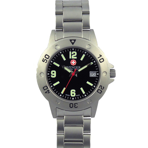 OverviewDetails and SpecsThis Swiss made Wenger watch has a sandblasted case and luminous hands that help you see the time even in the dark. More Information Swiss made Analog Shows the date Luminous hands-indexes Stainless steel construction... Read more