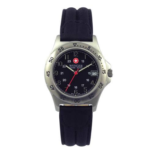 OverviewDetails and SpecsThis Swiss made Wenger watch has a functional rotating bezel, padded strap, and luminous hands that help you see the time even in the dark. More Information Swiss made Analog Luminous hands-indexes Shows the date Full... Read more