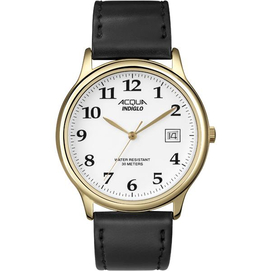Acqua creates affordable digital and analog watches with Timex® quality and durability. Acqua designs watches for casual or formal occasions, as well as sporty watches for working out. Round white dial with date feature. Black leather watchstrap.... Read more