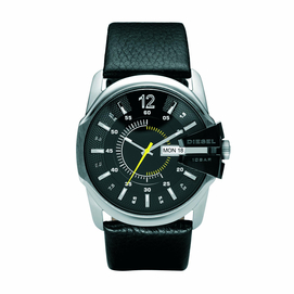 Who knew punctuality could look so cool? Diesel watches feature advanced functionality and cutting-edge design. Black analog dial. Black leather strap. Stainless steel case. Limited 2 years warranty.