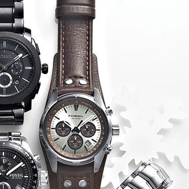 Fossil® Men's Brown Leather Strap Watch view