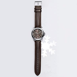 brushed and polished silvertone case brown multi-function dial limited 10-year warranty; details with purchase