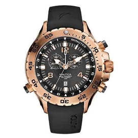 Nautica, a modern American classic, offers quality, design and value while capturing the essence of an active, adventurous and spirited lifestyle. Rose gold case. Black polyurethane watchstrap. Round black dial with Swiss Yachtime... Read more