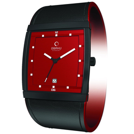Obaku™ Men's IP Black Stainless Steel Watch with Leather Band and Date view