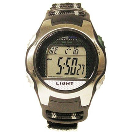 A stylish digital watch designed perfectly for active sports-minded individuals. Digital. Black and grey nylon/self adhesive watchstrap. Silver and black case. Water resistant up to 50 metres. Features include a calendar, stopwatch, alar... Read more
