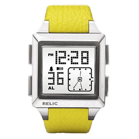 A stylish and functional watch for everyday use. Analog and digital. Yellow leather watchstrap. Silver case. Water resistant up to 5ATM. Multifunction. 2 year limited watch warranty.