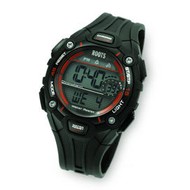 As part of Canada's leading lifestyle brand, the Roots collection of watches embodies the casual, athletic, hip and outdoor nature of this iconic company. Digital Black watchstrap Black and orange case Water resistant up to 100m 2 year limite... Read more
