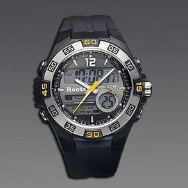 digital/analog display date function countdown timer black strap silvertone case dial with yellow accents chronograph alarm electroluminescent backlight waterresistant to 100 m 2-year limited warranty, details with purchase