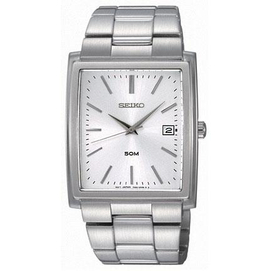 Rectangular white analogue dial White stainless steel watchstrap White stainless steel case 50 m water resistance
