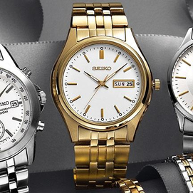 gold-plated metal case and bracelet water-resistant: 30 metres Lorus® by Seiko digital alarm clock included with the purchase of Seiko watch. Alarm clock must accompany any returns.