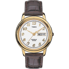Keeps on ticking. Timex is Canada's best selling watch brand, thanks to its commitment to value and reliability. White dial with day and date feature. Genuine brown leather croco watchstrap. Gold case colour. Water resistant up to 30m. 1 yea... Read more