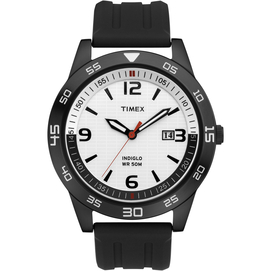 Keeps on ticking. Timex is Canada's best selling watch brand, thanks to its commitment to value and reliability. White dial Black durable resin watchstrap Date indicator Black and silver case with ring Water resistant up to 50m Limited 1 yea... Read more