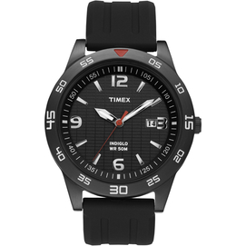 Keeps on ticking. Timex is Canada's best selling watch brand, thanks to its commitment to value and reliability. Black round textured dial Black durable resin watchstrap Date indicator Black case with ring Water resistant up to 50m