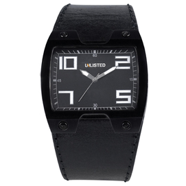 A fashionable versatile watch you can wear to school, work or play! Analog black rectangular dial Black leather watchstrap Black case 2 year limited warranty on movement only