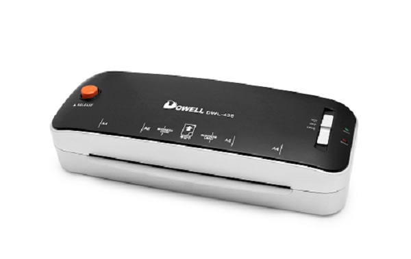 Dowell Dowell DWL-438 Pouch Laminator Convenient - Release mechanism to clear accidental jams Laminates from ID to A4 size pouches Auto Off after 30 mins of machine idle Cold setting for self seal pouches Power / Ready light PATENT DESIGN