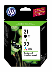 HP #21/22 Ink Combo Pack contains a black and a colour ink cartridge.