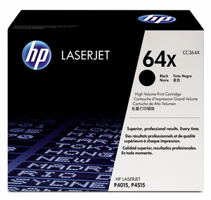 Features: Black Yields up to 24,000 pages Mfr's # CC364X. Compatible Models: HP LaserJet P4015 Series HP LaserJet P4515 Series.