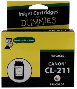 The For Dummies Canon CL211 Tri-Colour Ink Cartridge delivers crisp prints that do not smear or streak.