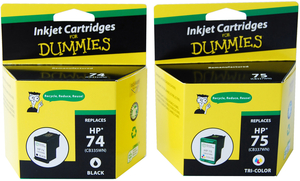 Save money with For Dummies replacement line of HP 74/75 Black and Colour Ink Cartridges.