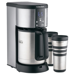 Hamilton Beach 10-Cup Coffee Maker (45238C) Perfect for entertaining, this Hamilton Beach 10-cup coffee maker keeps coffee hot without changing the flavour. It also features a blue backlit programmable LCD, auto shut-off, and a thumb-activate... Read more