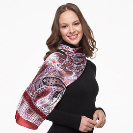 Our essential satin oblong scarf is a timeless piece in paisley. 100 % polyester Machine wash. Do not tumble dry. No bleach. Cool iron 118.'' x 63 '' (16)purple/red/rose/black/medium grey (17) medium grey/blue/teal/black/ivory (18)ligh... Read more