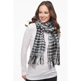 Thick and soft slubbed yarn creates a beautiful texture on this black space dyed scarf. 100 % acrylic 30 degree machine wash. Flat dry. Low iron. Do not bleach 12'' x 6''