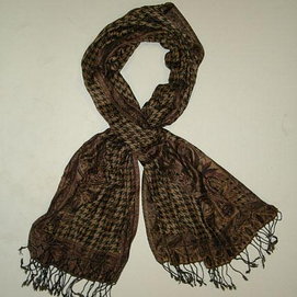 This jacquard has a unique pattern creating a beautiful blend of paisley and houndstooth. Made of 100% Viscose Machine wash. Do not tumble dry. Do not bleach. Warm iron if needed. 27.6" x 70.0" + Fring