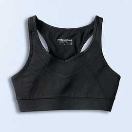 CATALOGUE/ONLINE EXCLUSIVE Only at Sears! removable cups medium support nylon-spandex with pique panel inserts black/white perfect for the gym or relaxing at home machine wash Form-Fitted: This is a close to body fit (snug).