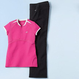 CATALOGUE/ONLINE EXCLUSIVE zip-up back pocket flatlock coverstitch seams nylon-spandex black perfect for the gym or relaxing at home machine wash Semi-fitted: Slightly fitted to follow your curves without being snug.