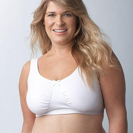 style #6859 pop-over styling, no closures seamless, gathered cups nylon-spandex machine wash hang to dry Made in Canada using domestic and imported components.