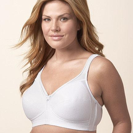 style #9602540 firm support bra midriff band ‘M’ frame surrounds seamed, lined cups leotard back side boning cotton with polyester side, top bust and straps machine wash white adjustable straps and back-hook closure hang to dry