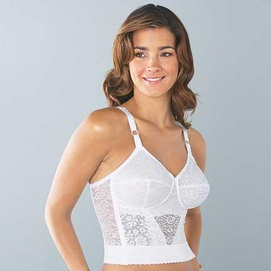 firm support seamed, slightly-padded cups underbust panel for uplift, shaping side boning wide elastic waist nylon-spandex machine wash adjustable straps and back-hook closure hang to dry style #2202