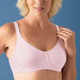 flexible underwire for shaping support extended mesh pockets elasticized trim at topline nylon-spandex hand wash adjustable straps and back-hook closure hang to dry style #4002 Made in Canada using domestic and imported components.