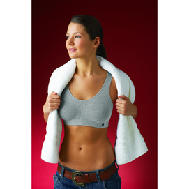 Pull on styling for all over support and comfort. 90% Cotton 6% Spandex 4% Polyester Wide padded under bust Double layered cups, each molded for superior absorbency and support Wire free style #V1860R Hand wash, hang to dry