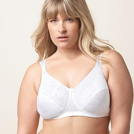 Only at Sears! style #W0971 soft-cup cut-and-sew style bra polyester fabric nylon lining nylon-spandex back cushioning silicone gel in straps adjustable straps hang to dry hand wash white