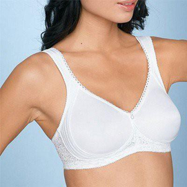 soft cups wide, cushioned straps Simplex fabric with micro denier back nylon-elastane lace, polyester cups, nylon lining hand wash style #2421 white adjustable straps and back-hook closure hang to dry