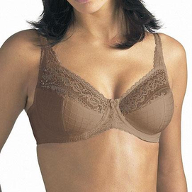 full support underwire bra minimizer reduces bust projection up to 1 inch three section cups with bottom cup made of geometrical jacquard fabric lined with cotton, top cup and center piece made of scalloped lace under bust frame decorativ... Read more