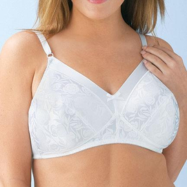 NEW! firm support delustered floral fabric front adjustable shoulder straps set-in cups midriff band nylon-spandex hand wash style #W1960 white hang to dry adjustable straps and back-hook closure