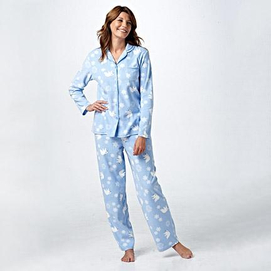 Aria, sleepwear that offers feminity and individuality. Long sleeve notch collar top Satin and picot edge trim detailing around neckline and breast pocket detail Made of 100% Polyester Machine wash cold, dry low