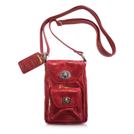 Peggy is a stylish, flashy little PDA or passport bag. It features a long adjustable cross shoulder strap with a front pocket and a back zippered pocket. It's the perfect size for your iPhone, Blackberry, or pasport. Scarlet leather Turn loc... Read more