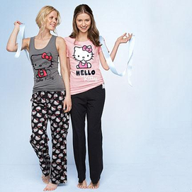 prism pink/black t-shirt pant cotton jersey pyjamas and eye mask machine wash Hello Kitty® is a Trademark of Sanrio.