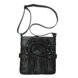 The convenience of a carry all while keeping your hands free. This crossbody handbag can be worn across the body or on the shoulder. Criss cross pleated front pocket Overlay belt detail Top zip closure Adjustable shoulder strap Back zippe... Read more