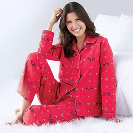 Only at Sears! brushed cotton flannel with pretty satin trims button-front top drawstring pants machine wash
