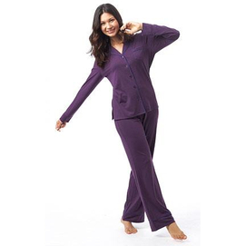 Slip into these perfectly feminine set of pyjamas, sending you off to sleep in style. 2pc set, pyjama top and bottom button front top elastic waist pull-on pant embroidered crest on chest pocket Tops has side slit hem 63% polyester 32% cotto... Read more