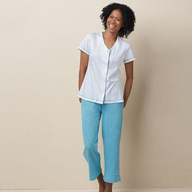 3-pc. set lets you choose pants or shorts in cool comfy cotton a versatile set you can wear all year round allover printed top and shorts capri-length pants with embroidered detailing top has matching embroidery on back yoke machine wash