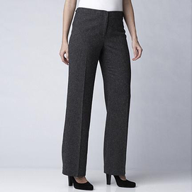 These tweed trousers look smart with a blazer, jacket, or sweater. The perfect pick for the office. 64% polyester, 35% rayon, 1% spandex Machine wash. Dry clean for best results Hidden closures with zip fly No front pockets for clean look. Bac... Read more