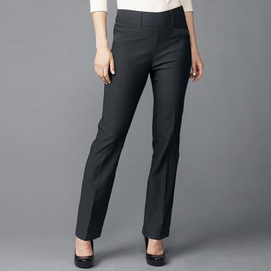 It might look like an ordinary dress pant, but this silky fabric comfortably hugs your curves without clinging. Perfect for long meetings at the office! Only at Sears! boot-cut leg 32" inseam; 30" in petites mid-rise pull-o... Read more
