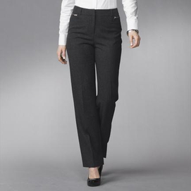sits below the waist straight leg body shaper panel zipper details polyester-rayon-spandex machine wash 32" inseam; 30" in Petite sizes